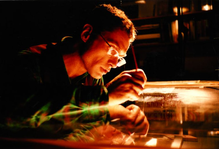 Rok 1984 i film „Latające włosy” stanowiły przełom w twórczości Piotra Dumały. To w nim po raz pierwszy zastosował technikę, która później stała się jego znakiem rozpoznawczym. Pewnego razu chciał namalować obrazek dla siostry swojej ówczesnej dziewczyny. Znalazł w domu starą deskę ze sklejki, jeszcze z czasów szkoły plastycznej, pokrytą kredowo-gipsowym gruntem. Była biała i wypolerowana, ale on, wzorując się na holenderskich mistrzach, najpierw zamalował ją na ciemnobrązowo. Następnie, cienką igłą, artysta zaczął wydrapywać gips, by nakreślić szkic. I wtedy zaświtała mu myśl: zeskrobana biała warstwa tworzyła tak wyrazisty rysunek, że sam w sobie mógł stać się klatką filmu.